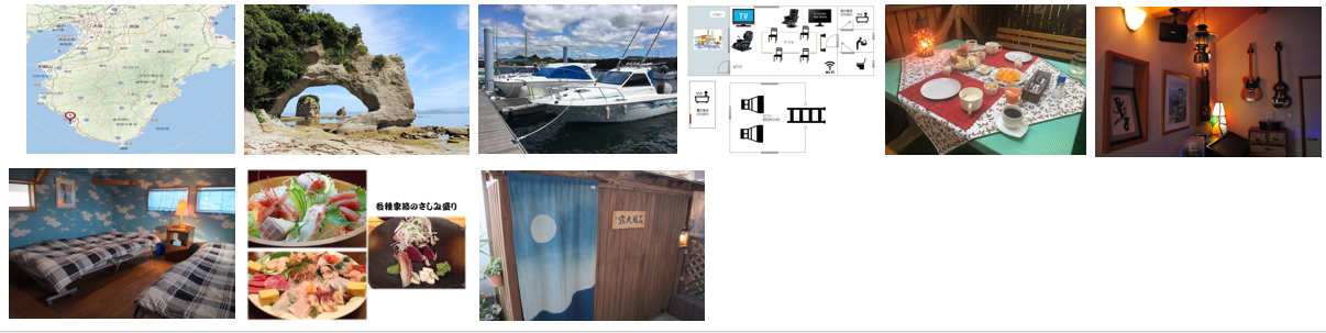 私はみんなから「がろちゃん」と呼ばれてる62歳のおじさんです。旅が好きで行先で感じた事、感動を頂いた事を、このお宿で少しずつでも、選んで頂いたお客様におすそ分けしたいと言う気持ちでお待ちしております。自家用の23フィートのモーターボートも近くの浮桟橋に置いています、天気の良い日ご希望がありましたらお声かけください。
